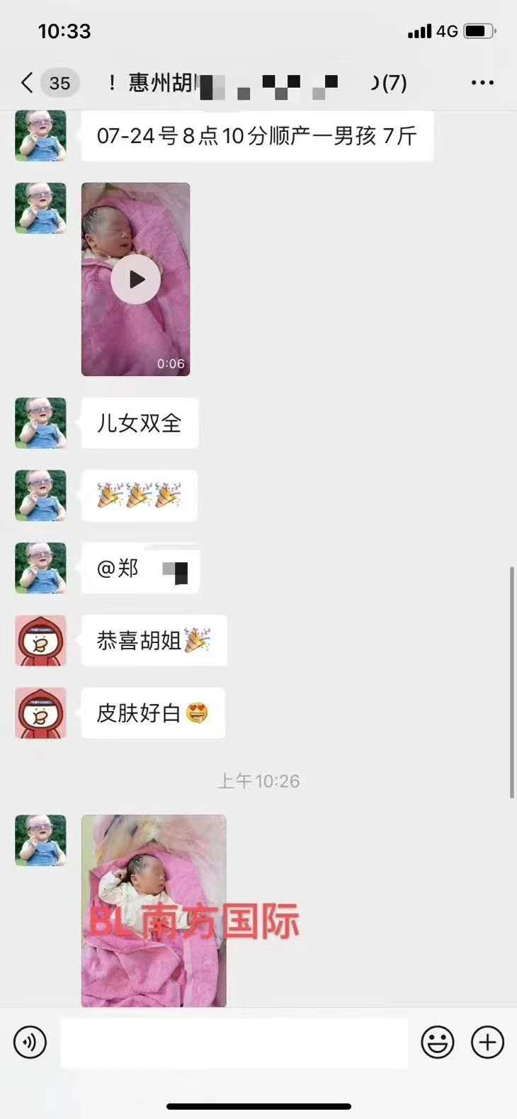 喜讯!BL南方国际接连在10天内,助孕了七个宝宝。这是第七个男宝,七斤重。恭喜我们惠州的客户,好福气,终于圆梦,儿女双全。